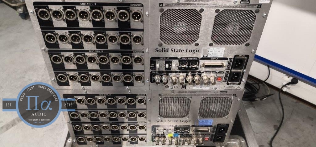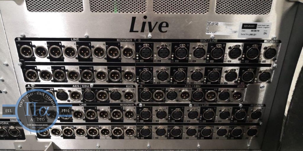 1 SSL L550, digital console, 2 XLight, 2 Dante, 2 MADI BNC, 4 MADI Fibre, 32 I/O, 16 AES I/O